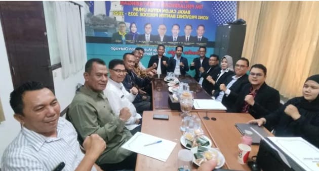 Serang, LN – Ketua team pemenangan, bersama pendukung serta simpatisan menghadiri penyerahan berkas pendaftaran ke pada Team Penjaringan dan Penyaringan (TPP ) KONI BANTEN. Penyerahan berkas ini merupakan pelaksanaan tahapan pencalonan,Abdul Salam Salim,sebagai bakal calon Ketua Umum KONI BANTEN Periode 2025-2029.