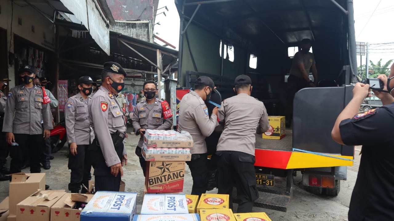 Amankan Ratusan Botol Miras di Anyar, Ops Bina Kusuma Polres Cilegon.