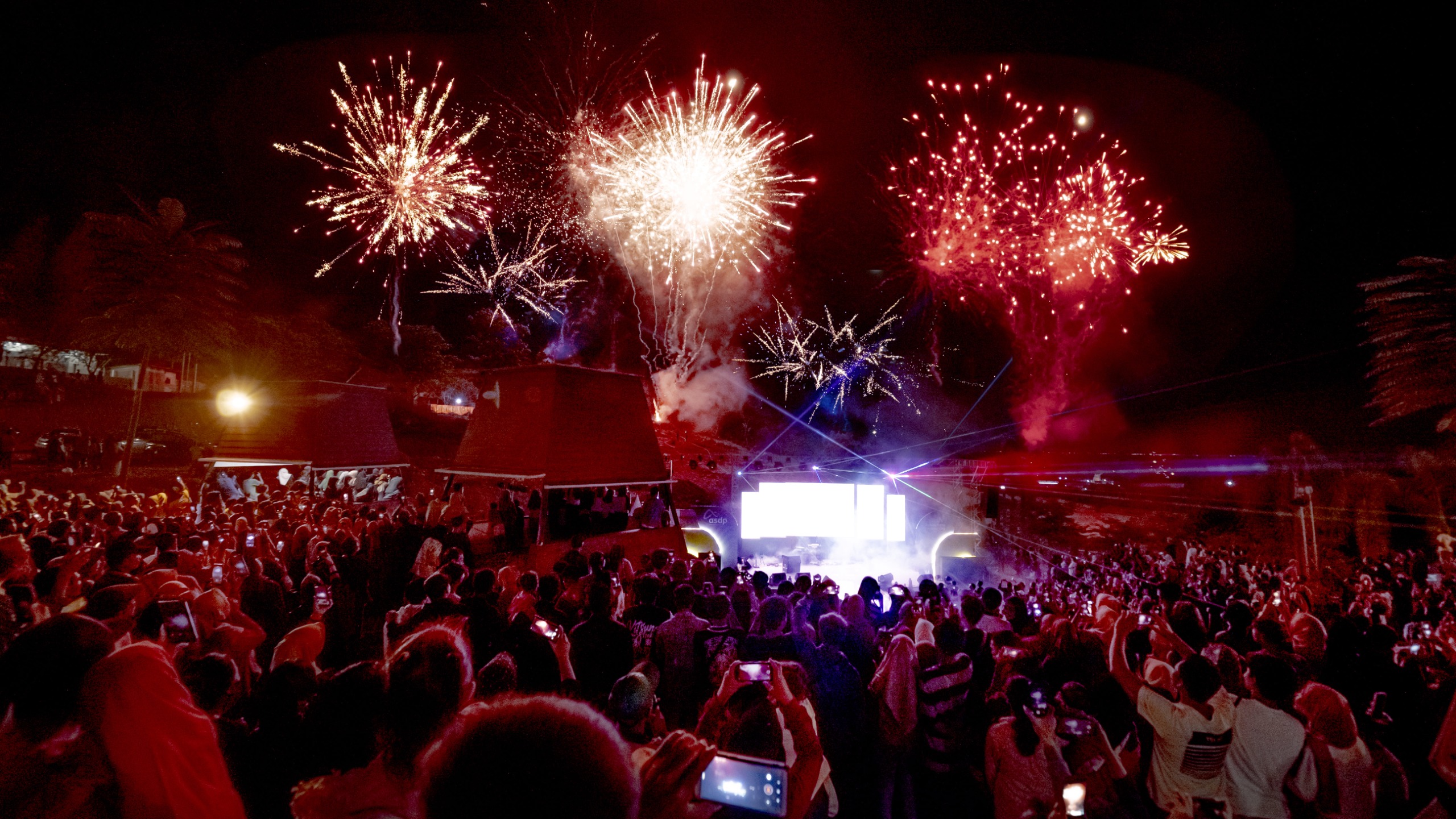 Gelaran puncak Pesta Tahun Baru semalam, merupakan rangkaian acara dan hiburan yang diisi oleh Coco Entertainment, dan sebagai persembahan hiburan puncak acara, ribuan pengunjung dapat menikmati semaraknya pesta kembang api sebagai penutup acara dan tanda dimulainya tahun 2024.