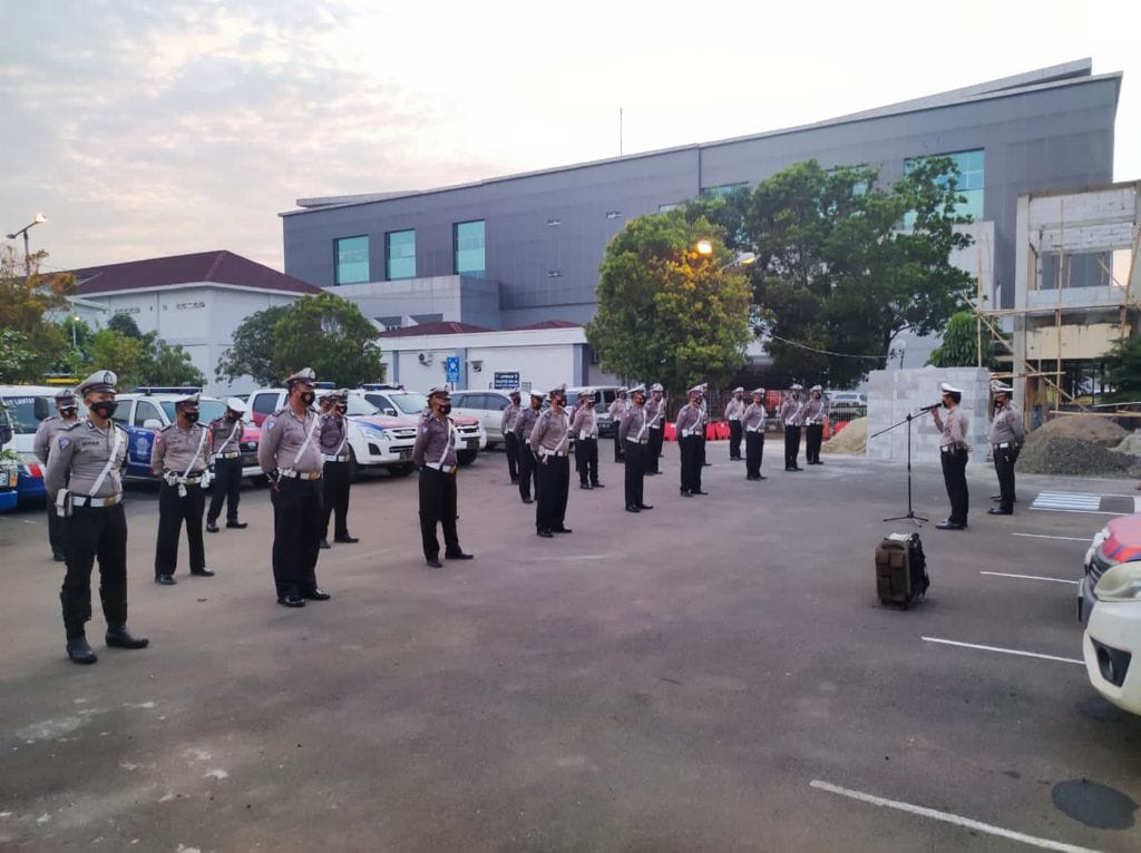 Tangerang,LN – Jajaran Satuan Lalu lintas Polresta Tangerang Polda Banten menggelar Apel Pagi di Halaman Mapolresta Tangerang Pukul 06.00 wib, Jumat 10/09/2021.