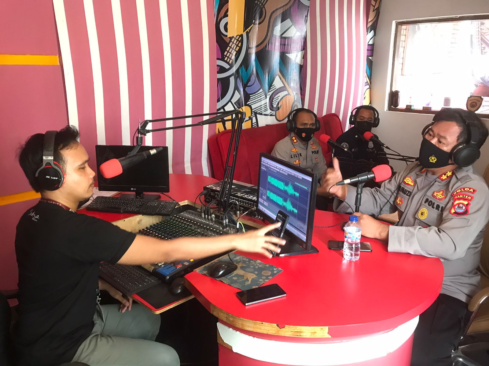 Dipandu oleh penyiar radio dari Paranti FM Pandeglang Haki, Kasubbid Sunluhkum AKBP Iin Fauzi didampingi Advokat Madya Bidkum Polda Banten AKBP Lilik Supratman dan Kaur Penum Bidhumas Polda Banten Kompol Riky Crisma membahas tentang bantuan hukum dan saran hukum bagi anggota Polri yang dilakukan oleh Bidang Hukum Polda Banten.