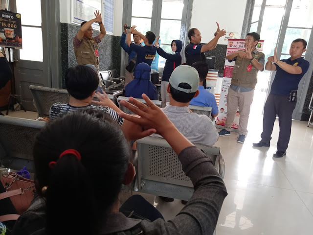 Lebih lanjut Dr. Eko juga mempraktekkan 6 langkah cara mencuci tangan menurut WHO kepada warga yang ada di Stasiun Serang menggunakan cairan antiseptik.