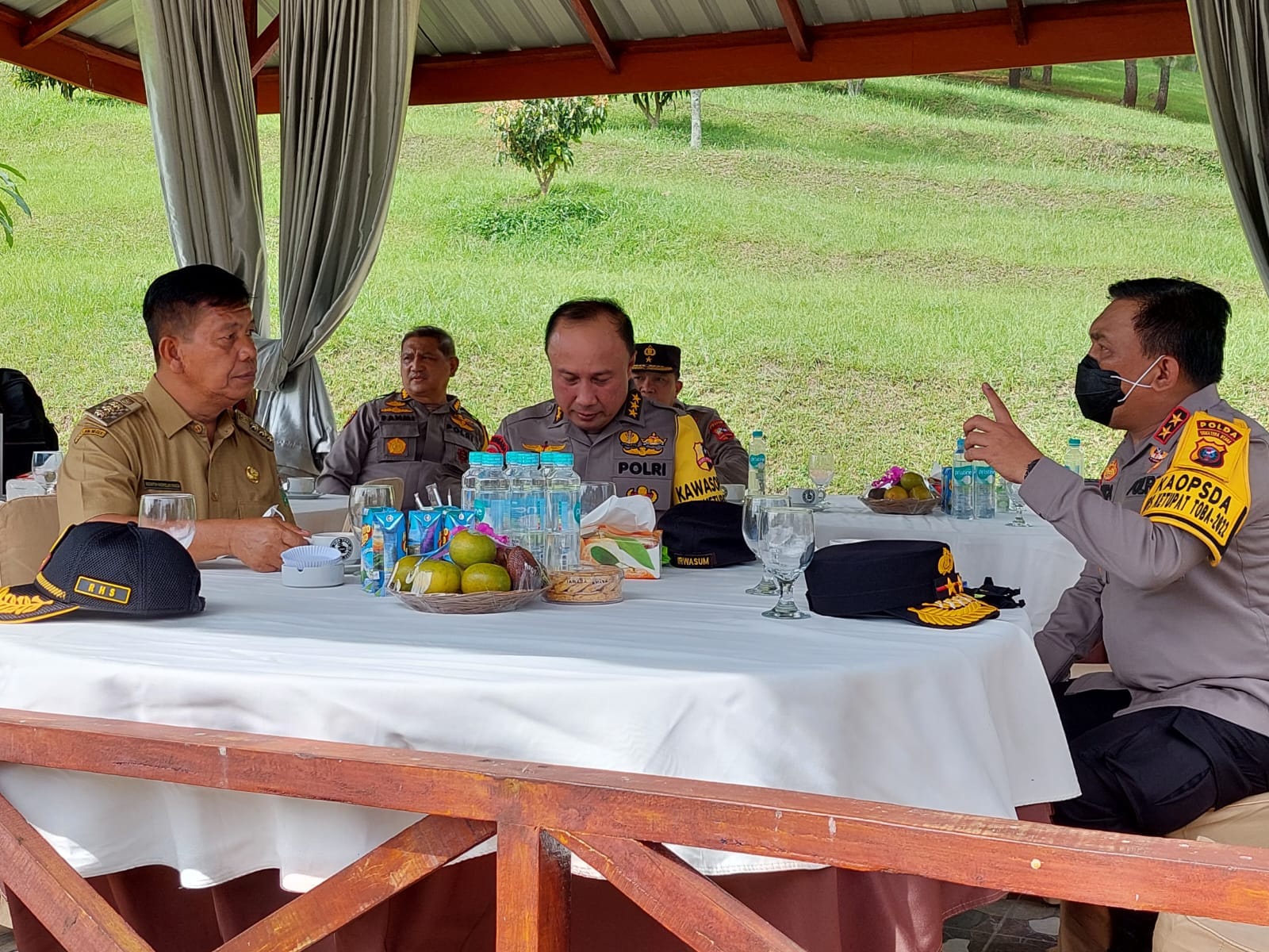 Kunjungan Kerjanya ke Geosite Parapat Sibaganding Simalungun Irwasum Mabes Polri, Komjen Pol Agung Budi Maryoto didampingi oleh Kapolda Sumut Irjen Pol Panca Putra Simanjuntak dan Bupati Simalungun Radiapoh Hasiholan Sinaga, Irwasda Polda Sumut Kombes Pol Armia Fahmi dan Kapolres Simalungun AKBP Nico Arifianto.
