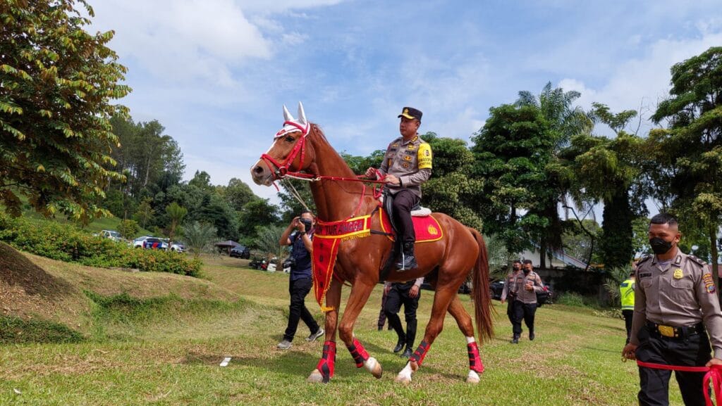 Simalungun,LN – Inspektorat Pengawasan Umum (Irwasum) Mabes Polri, Komjen Pol Agung Budi Maryoto kunjungan Kerja ke Geosite Parapat Sibaganding Simalungun dengan menunggang Satwa Kuda Turangga, Senin ( 9/5/2022)