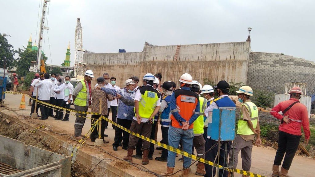 DPRD Kota Tangerang meminta pihak JKC untuk menghentikan sementara pembangunan jembatan tol JORR II di Jalan Irigasi Sipon sisi kiri dan pekerja bisa tetap kerja di sisi kanan, Kelurahan Buaran Indah, Kota Tangerang.