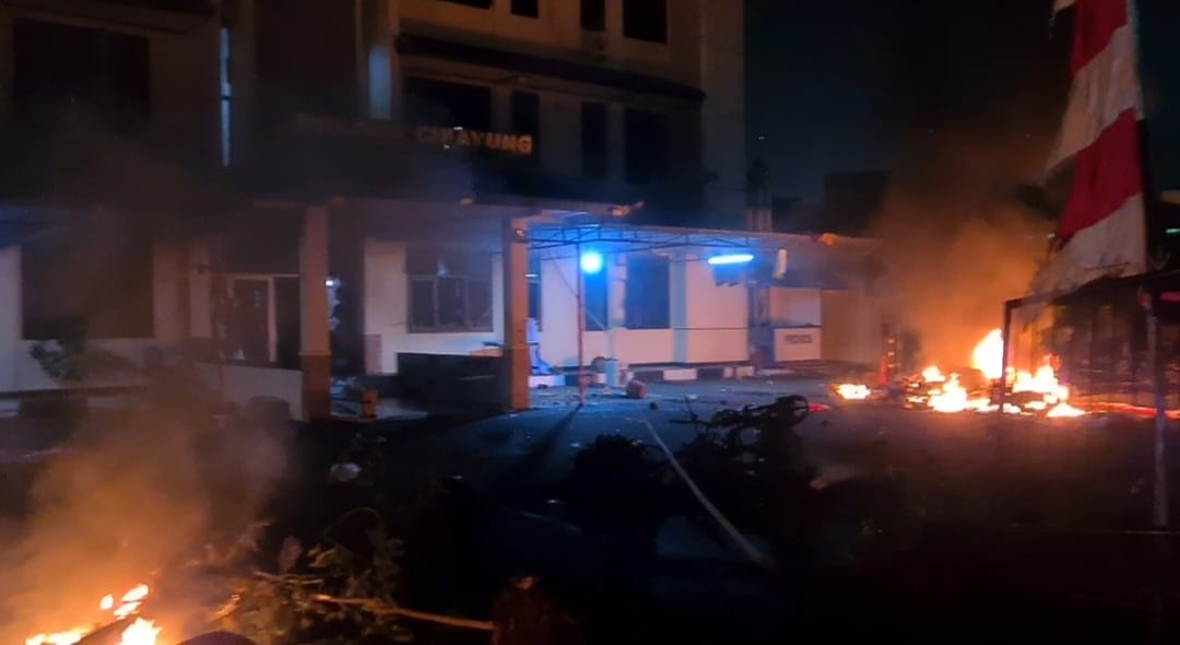 “Ini benar benar Mencekam, kaget soal saya persis dibelakang bangunan Polsek ini ” ujar Anto warga sekitar Satu 30/08/2025.