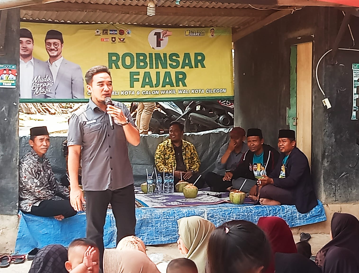 Cilegon, LN – Silaturahmi pasangan calon walikota dan wakil walikota Cilegon No urut.1 (Robinsar-Fajar) yang mengusung tagline “Muda Berani Maju” menggelar sosialisasi di lingkungan wilayah kelurahan Gerem, kecamatan Gerogol, kota Cilegon.