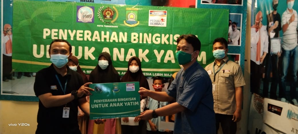 Tangerang,LN – Persatuan Wartawan Indonesia dan Serikat Media Siber Indonesia (SMSI) mengadakan santunan Anak Yatim bersama Indomart di Sekretariat Bersama PWI-SMSI, Jum’at,(07/05/2021).