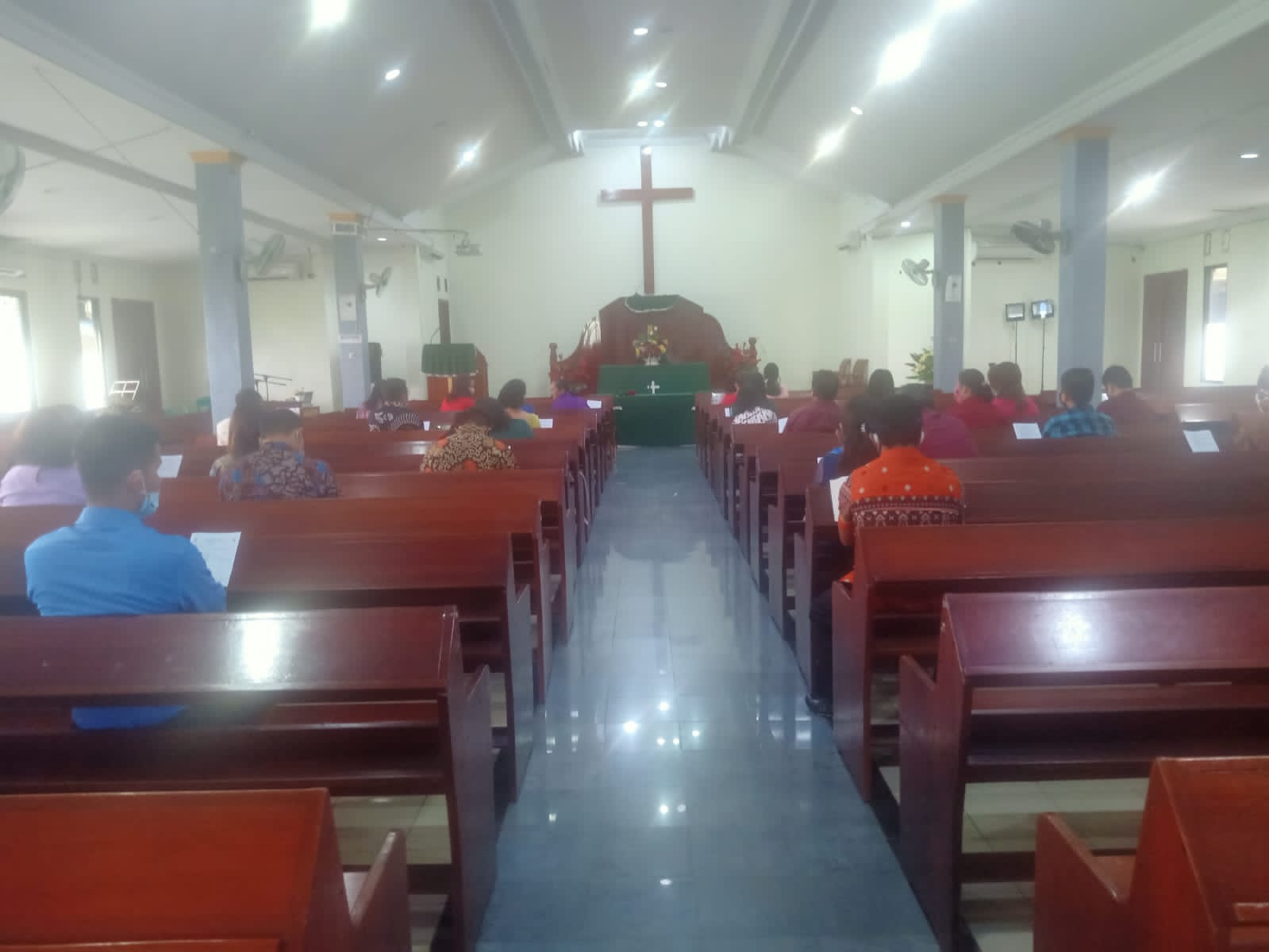 Kegiatan ibadah mingguan tersebut dihadiri oleh 60 orang jemaat dibagi 2 sesi dengan penanggung jawab Pdt. M. Manulang, S.Th. Pada kebaktian tersebut dilaksanakan dengan menerapkan Protokol kesehatan.