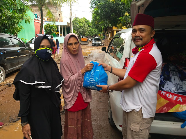 Bantuan di distribusikan secara langsung kepada warga terdampak banjir di lokasi beberapa jam setelah peristiwa terjadi.