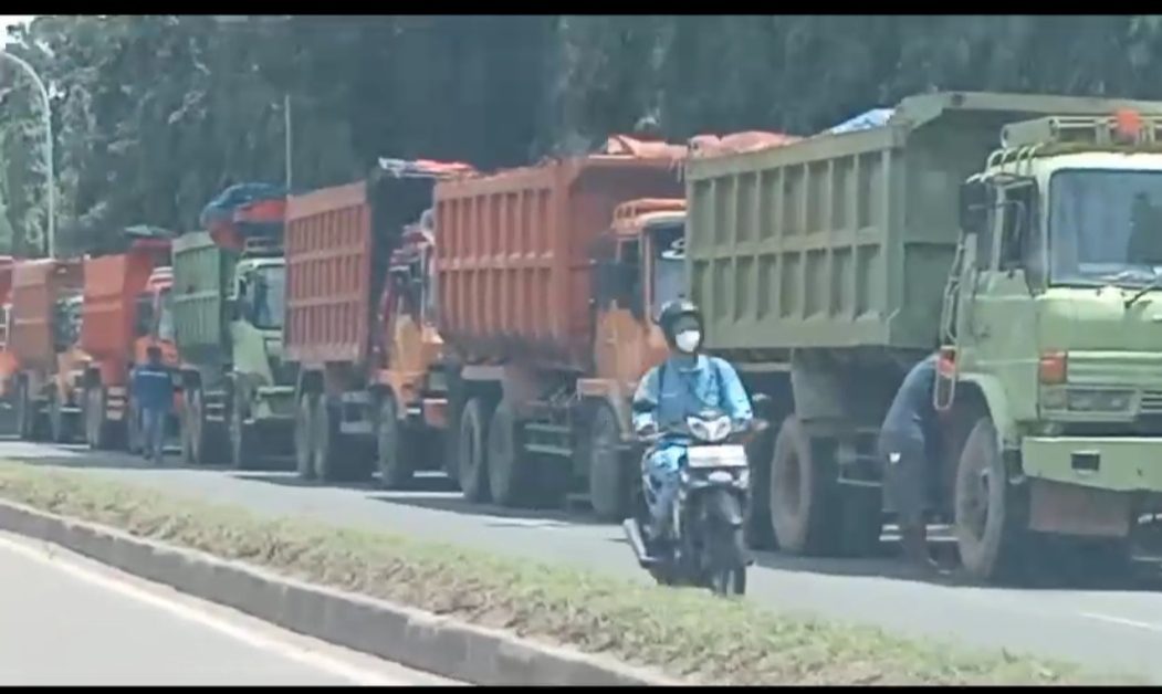 Hal ini diketahui lugas TV melakukan pemantauan langsung ke lokasi rabu 17/01/2024 jelas terdapat kendaraan berjejer dalam posisi muatan material tanah merah dan tampak jelas hampir semua kendaraan tidak menutup dengan terpal.