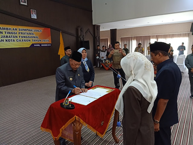CILEGON | Berdasarkan hasil Seleksi Terbuka Jabatan Pimpinan Tinggi (JPT) Pratama atau Open Bidding Kepala Dinas yang dilaksanakan pada Kamis, (7/11) kemarin. Lima JPT Pratama tersebut sudah ditetapkan dan dilantik pada hari ini, Senin, (30/12/2019).