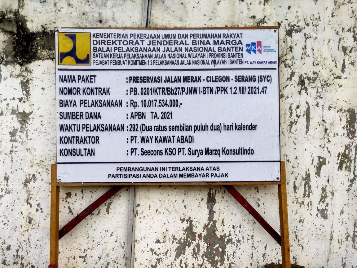 Berikut isi Papan proyek preservasi merak-Cilegon-Serang.